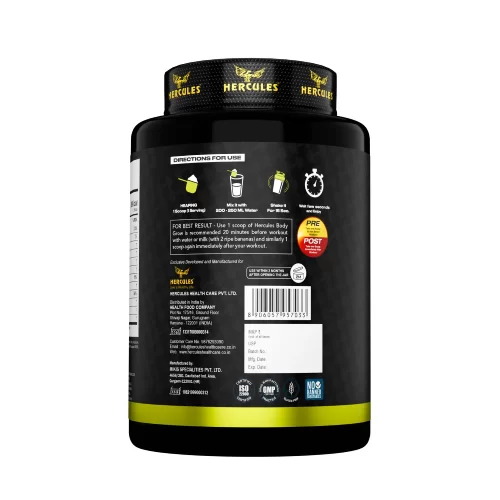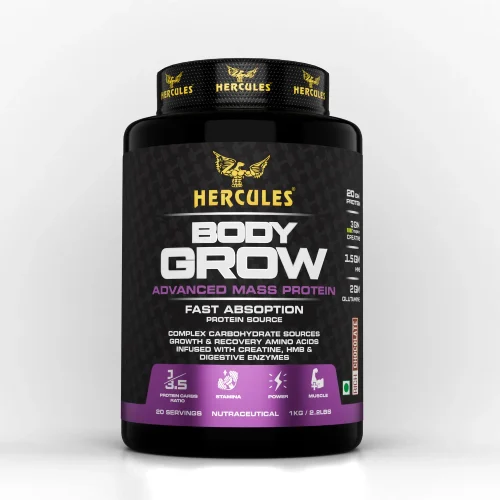 Hercules Body Grow has a high-quality Whey Concentrate and Soy Isolate Protein Blend which imparts a superior Amino Acid profile to your body post your workouts, providing you with extra quick recovery, spectacular Muscle Weight Gain, and Muscle Growth by keeping your body into an anabolic state.